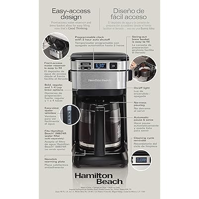 The hamilton beach programmable grind and brew 12 cup coffee maker offers two ways to brew. Hamilton beach 12 cup programmable coffee maker is black and stainless steel. Wake up to delicious coffee every day with this sleek hamilton beach programmable coffee maker. The hamilton beach 12 cup programmable coffee maker with stainless steel accents has a large 12 cup capacity and is programmable so your coffee is hot and ready in the morning when you wake up. Programmable clock with 2 hour automatic shutoff. Choose from 3 brewing options: Ratings, based on 7 reviews. Brews up to 12 cups like a traditional drip coffee maker. The coffee maker is easy to program, and it automatically shuts off after 2 hours for peace of mind. It's perfect for small kitchens or any place where you'd like to conserve space. The perfect cup of coffee the hamilton beach programmable easy access deluxe coffee maker can brew up to 12 cups of coffee, but you can customize your cup with bold or regular brewing options. Holds coffee hot and fresh. With front access to the water reservoir and brew basket, the hamilton beach programmable easy access coffee maker puts an end to the back and forth maneuvering of a countertop coffee maker.