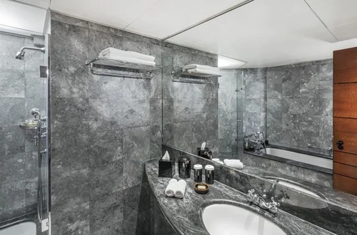 Choose contemporary fixtures to match the modern design of the bathroom.